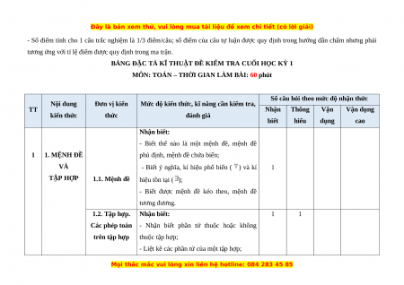 A. Ma trận đề kiểm tra cuối học kỳ 1