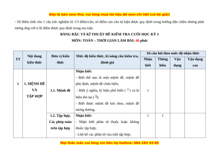 A. Ma trận đề kiểm tra cuối học kỳ 1