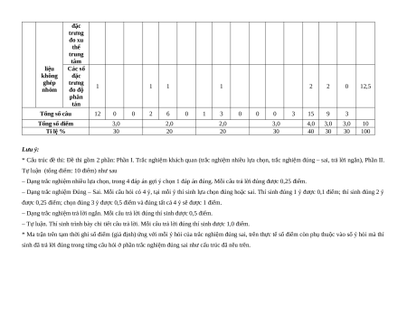 * Cấu trúc đề thi: Đề thi gồm 2 phần: Phần I. Trắc nghiệm khách quan (trắc nghiệm nhiều lựa chọn, trắc nghiệm đúng – sai, trả lời ngắn), Phần II.