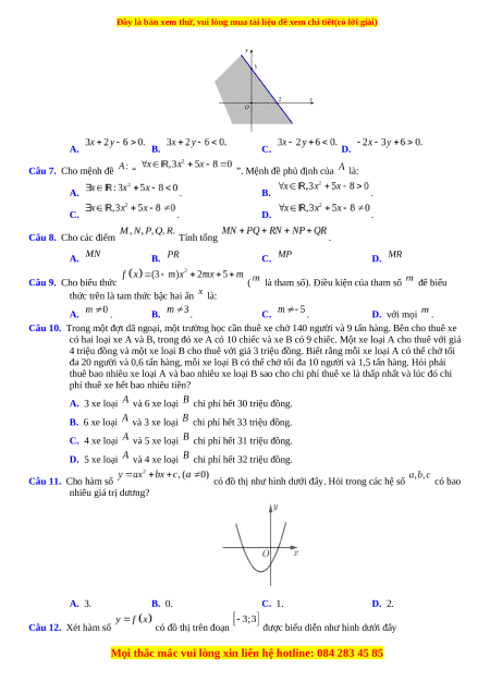 Câu 10. Trong một đợt dã ngoại, một trường học cần thuê xe chở 140 người và 9 tấn hàng. Bên cho thuê xe