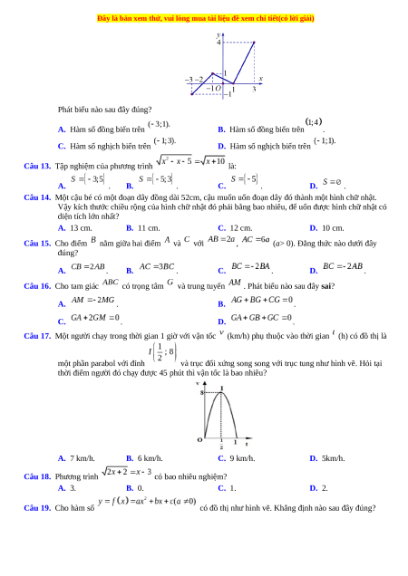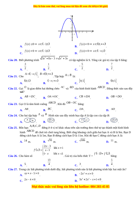 Câu 18. Phương trình có bao nhiêu nghiệm? A. 3. B. 0. C. 1. D. 2. Câu 19. Cho hàm số