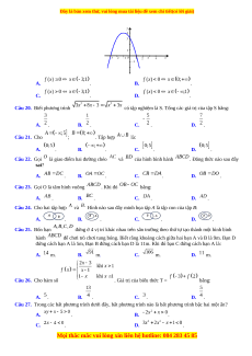 đứng cách bạn A là 5m, Bạn B đứng cách bạn D là 11m. Khi đó bạn C đứng cách bạn A là: A. m. B. m. C. m. D. m. Câu 26. Cho hàm số
