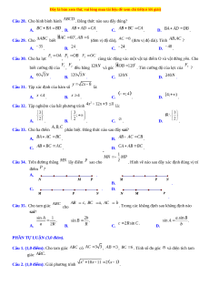 có tập nghiệm là S. Tổng các giá trị của tập S bằng: A. . B. . C. . D. . Câu 21. Cho ; . Tập hợp là: A. . B. . C. . D. .