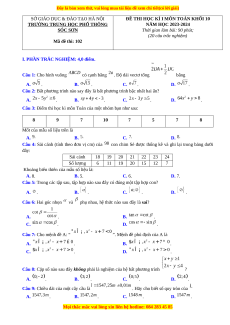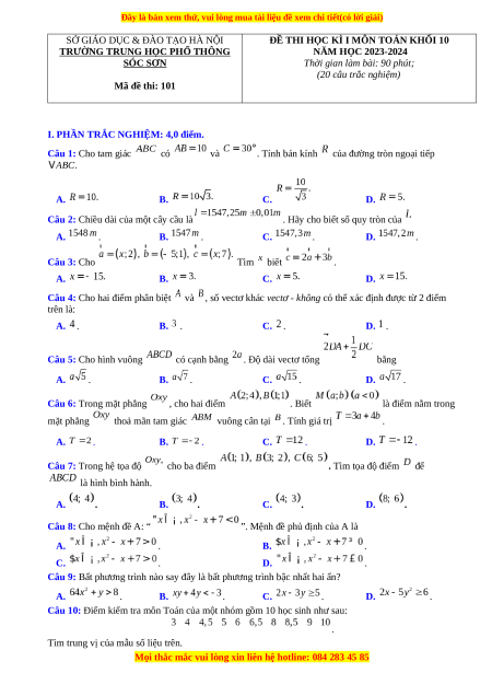Đề thi cuối kì 1 Toán 10 năm 2024 trường THPT Sóc Sơn - Hà Nội