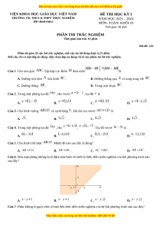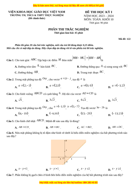 TRƯỜNG TH, THCS & THPT THỰC NGHIỆM NĂM HỌC 2023 – 2024 (Đề chính thức) MÔN: TOÁN. KHỐI 10 Thời gian: 90 phút