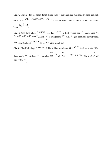 Câu 6. Trong các giới hạn sau giới hạn nào bằng 0. A. B. C. D.