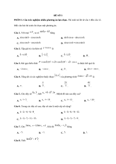 Câu 4. Tổng tất cả các nghiệm thuộc đoạn của phương trình là A. . B. . C. . D. . Câu 5. Cho dãy số , biết