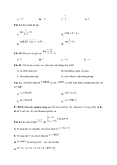 Câu 6. Trong các dãy số sau, dãy số nào là một cấp số cộng? A. . B. C. D. . Câu 7. Cho . Khi đó bằng A. B. C. D. Câu 8. Tính . A. B. C. D.