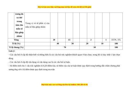tâm cho mẫu số liệu ghép nhóm mẫu số liệu ghép nhóm Tổng 20 15 2 1 35TN, 3TL Tỉ lệ (%) 40 30 20 10 100 Tỉ lệ chung (%) 70 30 100 Lưu ý: