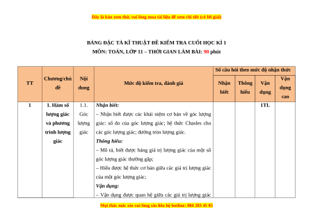 BẢNG ĐẶC TẢ KĨ THUẬT ĐỀ KIỂM TRA CUỐI HỌC KÌ 1
