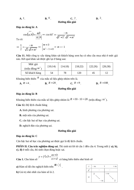 Câu 11. Một công ty xây dựng khảo sát khách hàng xem họ có nhu cầu mua nhà ở mức giá