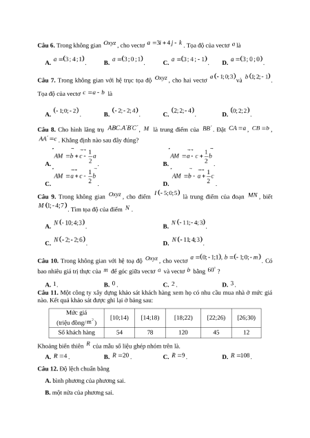 Câu 10. Trong không gian với hệ toạ độ , cho vectơ . Có
