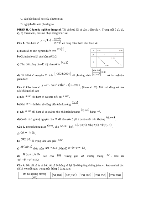 c), d) ở mỗi câu, thí sinh chọn đúng hoặc sai. Câu 1. Cho hàm số