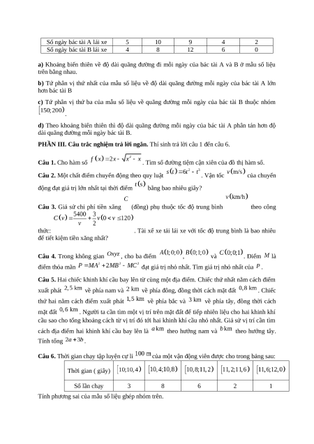 Câu 3. Giả sử chi phí tiền xăng (đồng) phụ thuộc tốc độ trung bình theo công thức: