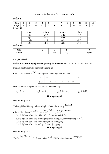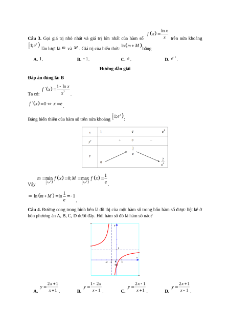 Mỗi câu hỏi thí sinh chỉ chọn một phương án. Câu 1. Cho hàm số