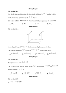 Câu 7. Trong không gian với hệ trục tọa độ , cho hai vectơ và . Tọa độ của vectơ là A. . B. . C. . D. .