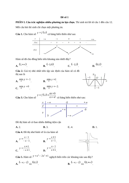 Câu 2. Giá trị nhỏ nhất trên tập xác định của hàm số có đồ thị sau là A. . B. . C. . D. Câu 3. Cho hàm số