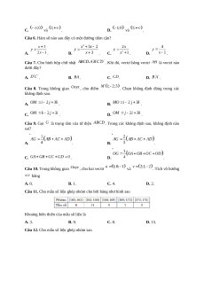 Câu 12. Cho mẫu số liệu ghép nhóm sau