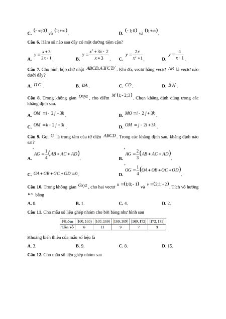 PHẦN I. Câu trắc nghiệm nhiều phương án lựa chọn. Thí sinh trả lời từ câu 1 đến câu 12.