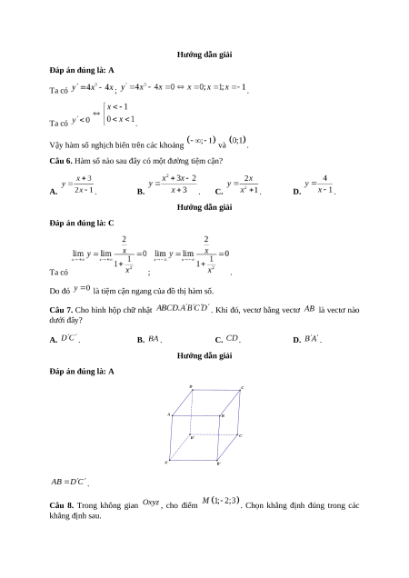 Mỗi câu hỏi thí sinh chỉ chọn một phương án. Câu 1. Cho hàm số