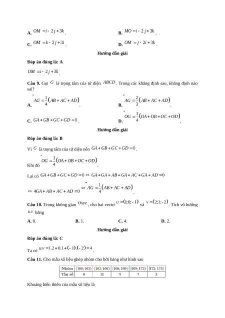 Câu 10. Trong không gian , cho hai vectơ và . Tích vô hướng bằng A. 0. B. 1. C. 4. D. 2.