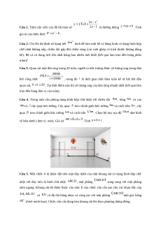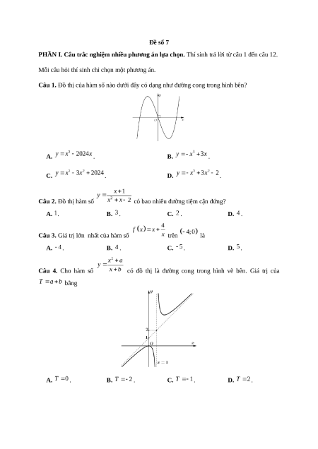 Câu 3. Giá trị lớn nhất của hàm số trên là A. . B. . C. . D. . Câu 4. Cho hàm số