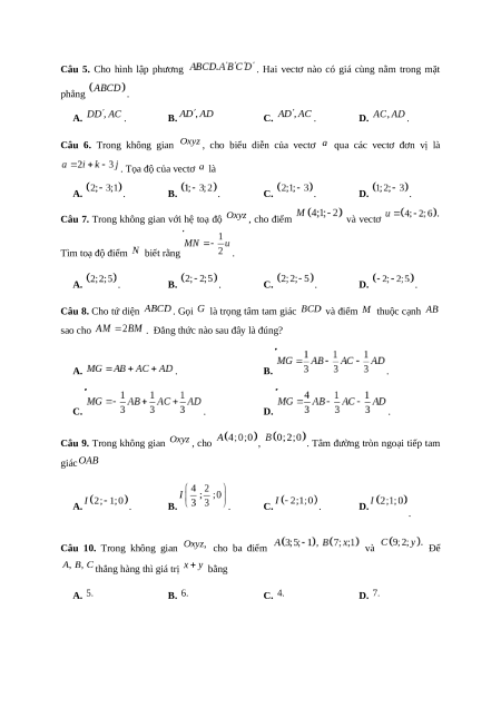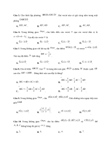 Câu 7. Trong không gian với hệ toạ độ , cho điểm và vectơ Tìm toạ độ điểm biết rằng . A. . B. . C. . D. .