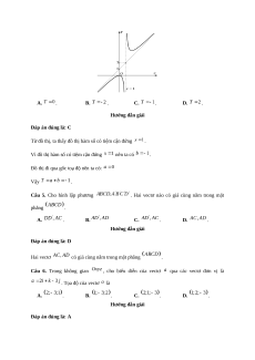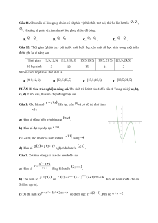 c), d) ở mỗi câu, thí sinh chọn đúng hoặc sai. Câu 1. Cho hàm số liên tục trên