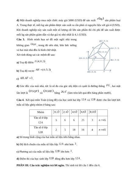 Câu 3. Hình minh họa sơ đồ một ngôi nhà trong không gian