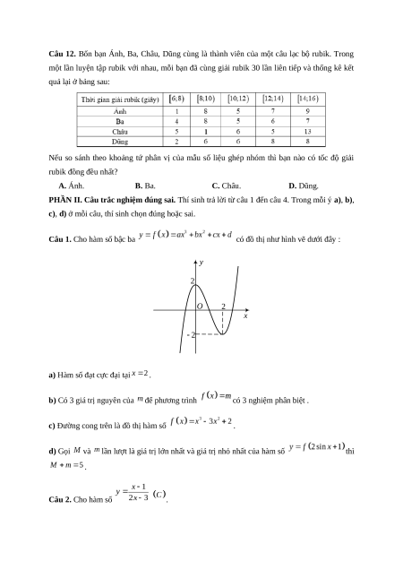 Câu 12. Bốn bạn Ánh, Ba, Châu, Dũng cùng là thành viên của một câu lạc bộ rubik. Trong
