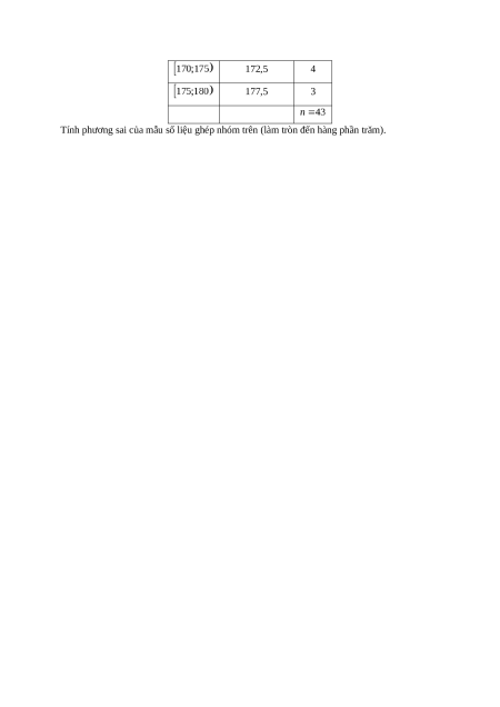 Độ lệch chuẩn của mẫu số liệu ghép nhóm có giá trị gần nhất với giá trị nào dưới đây? A. . B. . C. . D. .