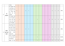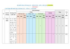Chủ đề/ Nội dung/ đơn Tự luận TT Nhiều lựa chọn “Đúng – Sai” Trả lời ngắn % Chương vị kiến thức Vận Vận Vận Vận Vận điểm Biết Hiểu Biết Hiểu Biết Hiểu Biết Hiểu Biết Hiểu dụng dụng dụng dụng dụng 1 Số tự Số tự nhiên. nhiên Thứ tự trong tập hợp các số tự nhiên. Các phép tính với 2 1 2 1 0 10% số tự nhiên. Phép tính luỹ thừa với số mũ tự nhiên Tính chia hết 1 1 1 1 1 1 15% trong tập hợp các số tự nhiên. Số nguyên tố. Ước chung và bội chung. Số nguyên âm và tập hợp các số nguyên. Thứ 2 3 1 5 1 0 15% tự trong tập hợp các số Số 2 nguyên. nguyên Các phép tính với số nguyên. Tính chia hết 1 1 2 0 2 2 15% trong tập hợp các số nguyên. Tam giác đều, hình vuông, lục giác đều. Hình chữ nhật, Hình 1 3 1 4 1 0 15% Hình thoi, hình bình 3