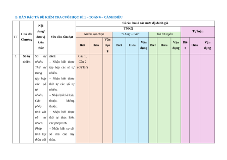 B. BẢN ĐẶC TẢ ĐỀ KIỂM TRA CUỐI HỌC KÌ 1 – TOÁN 6 – CÁNH DIỀU