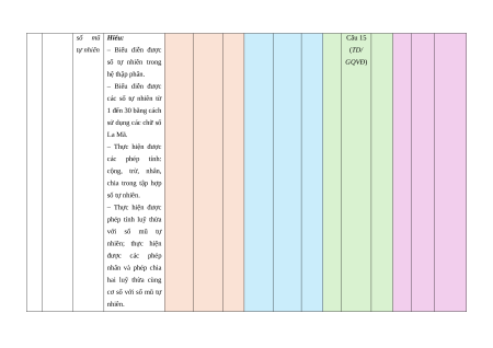 Số câu hỏi ở các mức độ đánh giá Nội TNKQ dung/ Tự luận Chủ đề/ Nhiều lựa chọn “Đúng – Sai” Trả lời ngắn TT đơn vị Yêu cầu cần đạt Chương Vận kiến Vận Vận Biế Vận Biết Hiểu dụn Biết Hiểu Biết Hiểu Hiểu thức dụng dụng t dụng g 1 Số tự