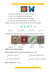 Câu 11. Trong các chữ cái sau đây, những chữ cái có tâm đối xứng là A. ; B. ; C. ; D. .