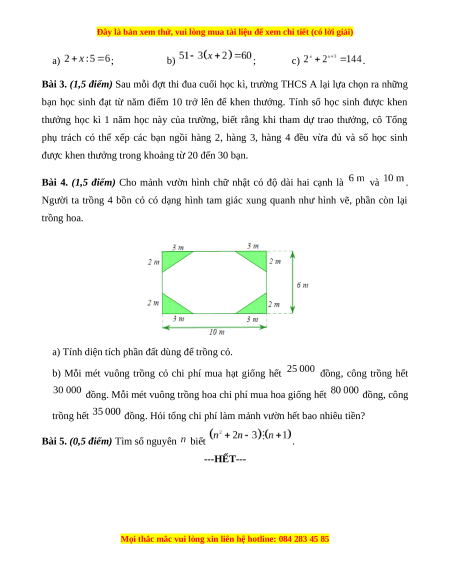 Bài 5. (0,5 điểm) Tìm số nguyên biết . ---HẾT---