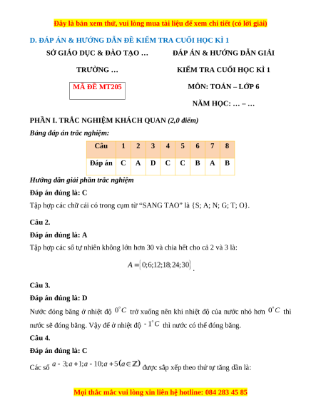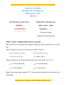 KIỂM TRA CUỐI HỌC KÌ 1 TRƯỜNG … MÔN: TOÁN – LỚP 6 MÃ ĐỀ MT205 NĂM HỌC: … – … Thời gian: 90 phút