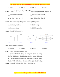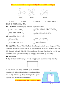Câu 1. Tập hợp các chữ cái có trong cụm từ “SANG TAO” là A. {S; A; N; G; T; A; O}; B. {S; A; N; G; T; A}; C. {S; A; N; G; T; O}; D. {SANG TAO}.