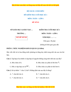 ĐỀ KIỂM TRA CUỐI HỌC KÌ 1 MÔN: TOÁN – LỚP 6 ĐỀ SỐ 03