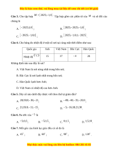 Câu 4. Cho bảng đo nhiệt độ ở một số nơi tại cùng một thời điểm như sau: Quốc gia Anh Việt Nam Bắc Cực Hàn Quốc Nhiệt độ 15 37 28