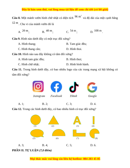 Chúng tôi đảm bảo đủ số lượng đề đã cam kết hoặc có thể nhiều hơn, tất cả có BẢN WORD, LỜI GIẢI CHI TIẾT và tải về dễ dàng.