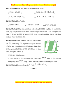 Bài 5. (0,5 điểm) Tìm các số nguyên biết . ---HẾT---