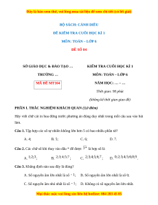 ĐỀ KIỂM TRA CUỐI HỌC KÌ 1 MÔN: TOÁN – LỚP 6 ĐỀ SỐ 04