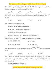 Câu 4. Biết rằng nhà toán học Archimedes sinh năm 287 trước công nguyên và mất năm
