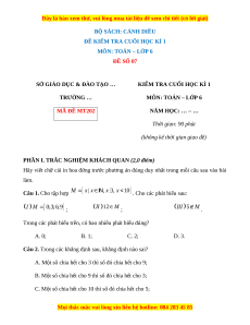ĐỀ KIỂM TRA CUỐI HỌC KÌ 1 MÔN: TOÁN – LỚP 6 ĐỀ SỐ 07