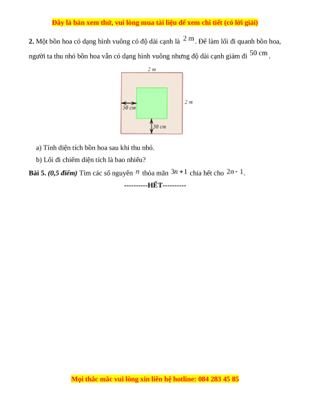 2. Một bồn hoa có dạng hình vuông có độ dài cạnh là