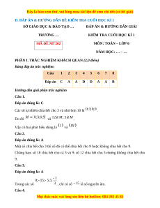 KIỂM TRA CUỐI HỌC KÌ 1 TRƯỜNG … MÔN: TOÁN – LỚP 6 MÃ ĐỀ MT202 NĂM HỌC: … – … Thời gian: 90 phút