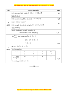 Câu Hướng dẫn chấm Điểm 0,25 0,25 c) (0,5 điểm) TH1: 0,25 TH2: 0,25 Vậy . 0,25