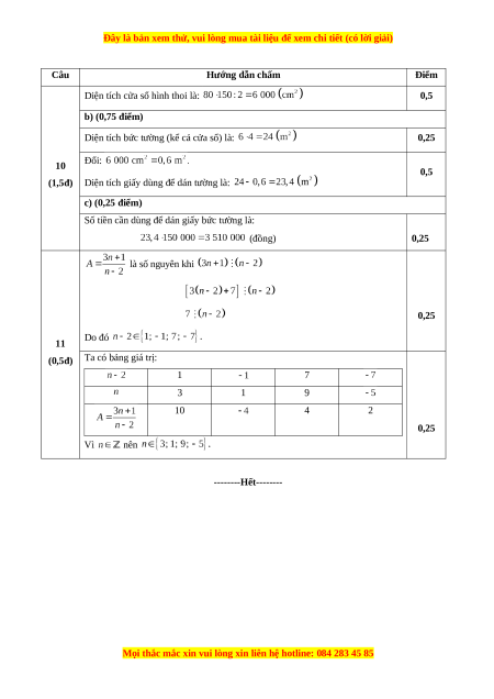 Câu 11 (0,5 điểm). Tìm tất cả các số nguyên để