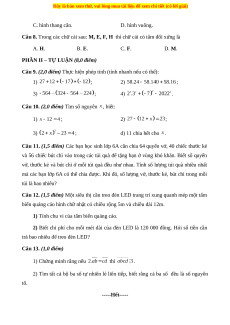 Câu 11. (1,5 điểm) Các bạn học sinh lớp 6A cần chia 64 quyển vở, 40 chiếc thước kẻ